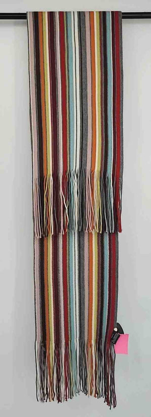 BONNE Red Gray Multi Knit Wool Pre Loved Striped Fringe Scarf