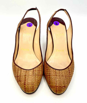 CHRISTIAN LOUBOUTIN Tan Brown Straw Woven Heels Shoe Size 38.5 US: 8 Shoes