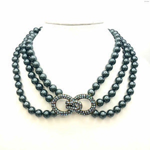 Blue Green Brass Iridescent Synthetic Pre Loved Necklace