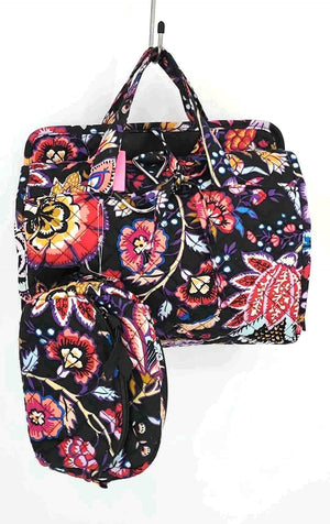 VERA BRADLEY Black Purple Multi Print Travel Bag Purse Set