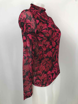 JADE by Johnny Was Red Black Mesh Roses Longsleeve Size X-SMALL Top