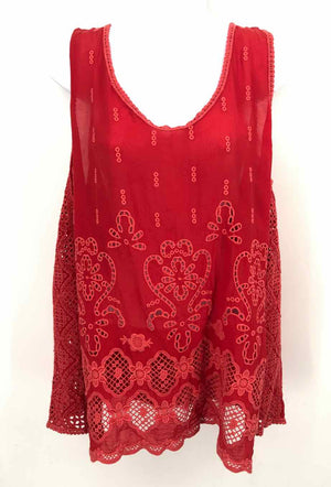 JOHNNY WAS Red Eyelet Tank Size LARGE (L) Top