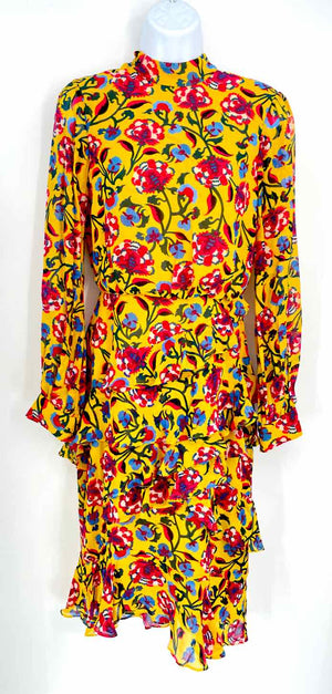 SALONI Yellow Red Multi Silk Floral Ruffle Size 2 (XS) Dress