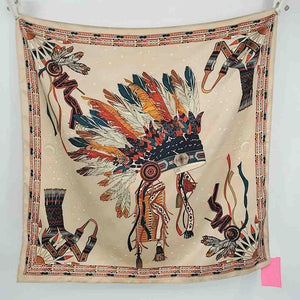 AMENAPIH Beige Red Multi Pre Loved Native American Square 21" 21" Scarf