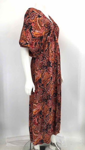 CHUFY - FOREVER PATAGONIA Orange & Black Red Multi Silk Print Puff Sleeves Dress