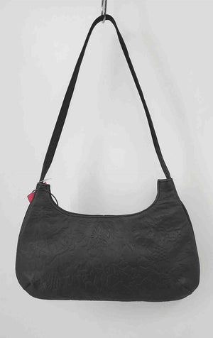 Black Leather Pre Loved Print Shoulder Bag Purse