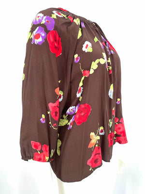 TUCKER Brown Red Multi Silk Made in USA Floral Print Longsleeve Top