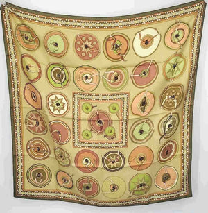 HERMES Lime Green Multi-Color Silk Original Packaging Scroll Pattern 90cm Scarf