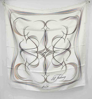 HERMES White Multi-Color Silk Original Packaging Scroll Pattern Square Scarf