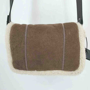 BRUNELLO CUCINELLI Brown Beige Suede Shearling Small Crossbody Purse