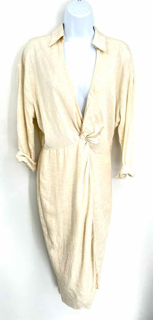 ANTHROPOLOGIE Beige Linen V-Neck Size 12P (L) Dress