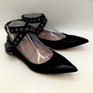 VALENTINO Black Silver Leather Made in Italy Grommets Flats Shoes