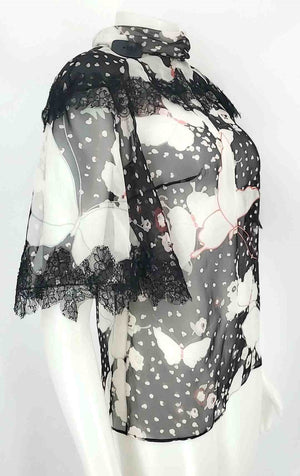 VALENTINO Black & White Multi-Color Silk Made in Italy Butterflies Blouse Top