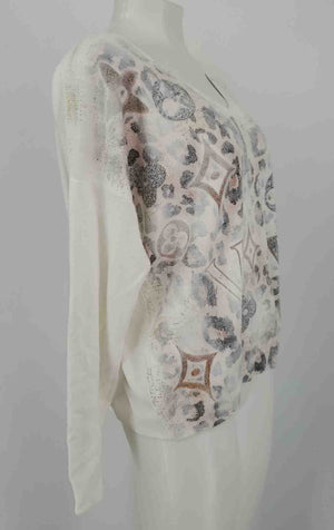 VENTI SEI White & Grey Gold Multi Knit Made in Italy Word Print Longsleeve Top