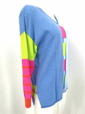 ZAKET & PLOVER Blue Pink Multi Knit Print Longsleeve Size SMALL (S) Sweater