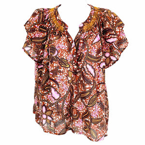 XIRENA Brown Pink Multi Print Short Sleeves Size MEDIUM (M) Top