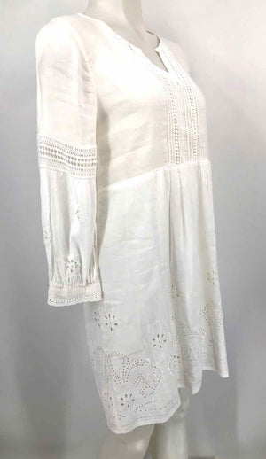 TOMMY BAHAMA White Linen Blend Crochet Trim Size SMALL (S) Dress