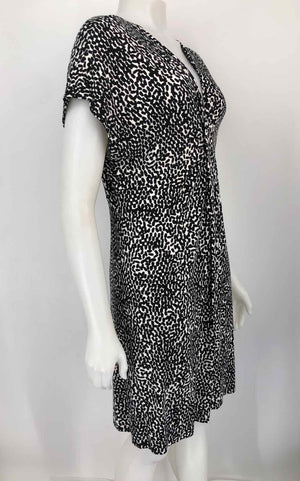 DVF - DIANE VON FURSTENBERG Black White Short Sleeves Size 12 (L) Dress