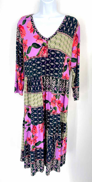 JOHNNY WAS Purple, Green Green Multi Floral Midi Size MEDIUM (M) Dress