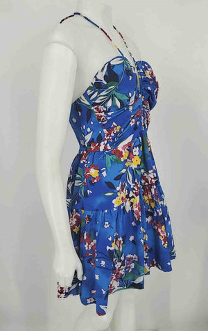 ANTHROPOLOGIE Blue White Multi Floral Mini Halter Size MEDIUM (M) Dress