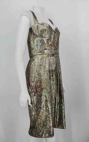 MILLY Gold Brown Sequined cut out Longsleeve Size 10 (M) Dress