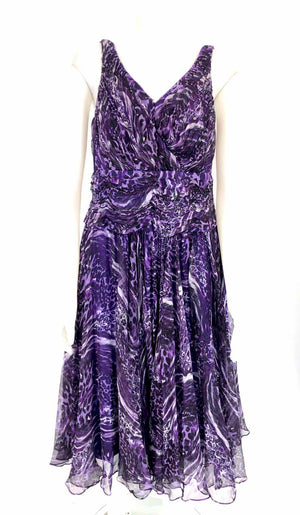 TADASHI Purple Black & White Silk Ruched Sleeveless Size 14 (L) Dress