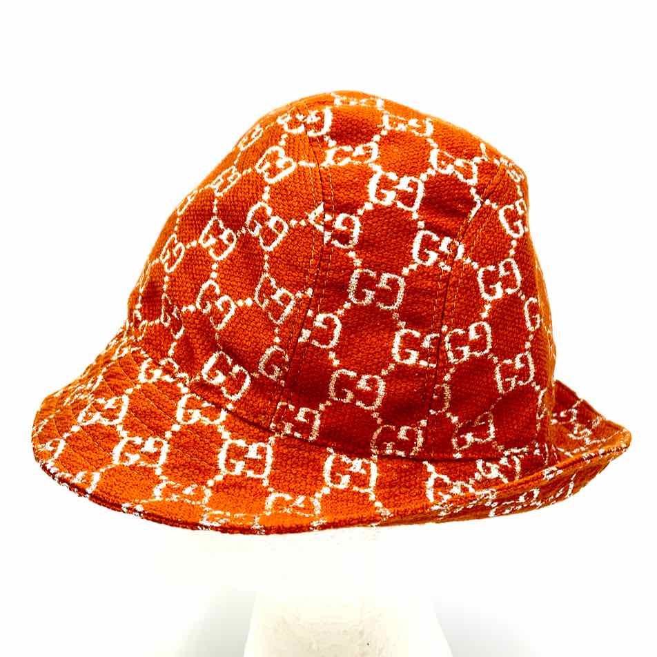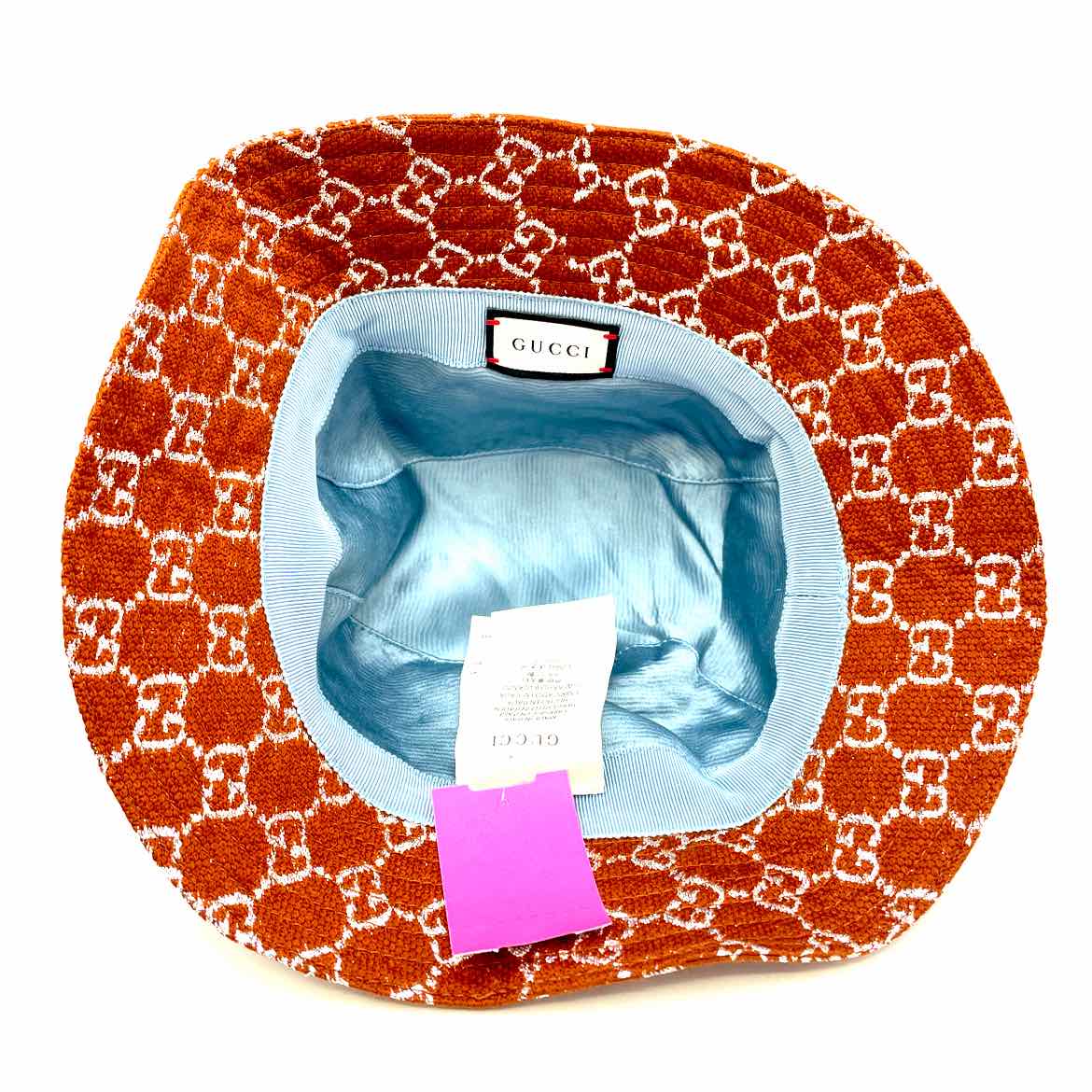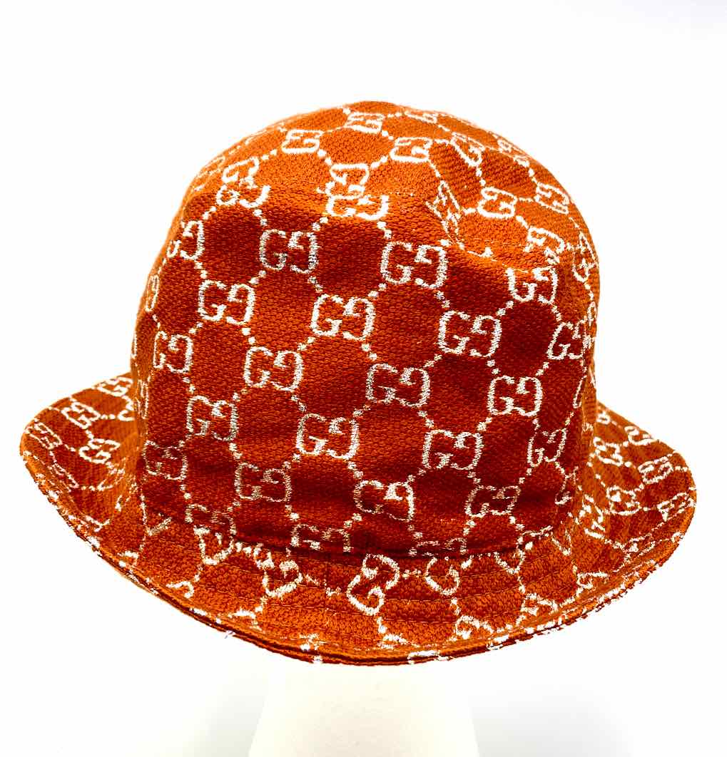 GUCCI Rust Brown Silvertone Pre Loved Monogram Bucket Hat