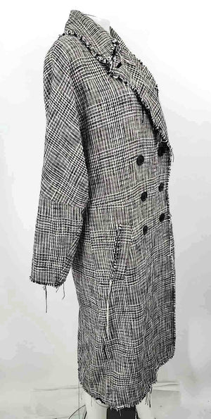 FREE PEOPLE Black & White Tweed Double Breasted Overcoat Jacket