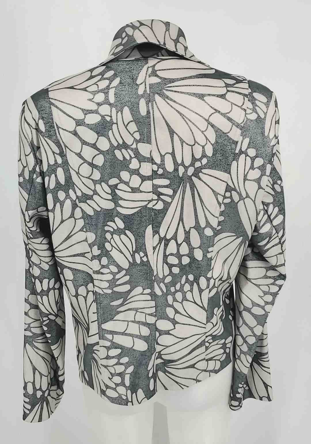 JOSEPH RIBKOFF Gray Ultra Suede Floral Hook & Eye Closure Jacket