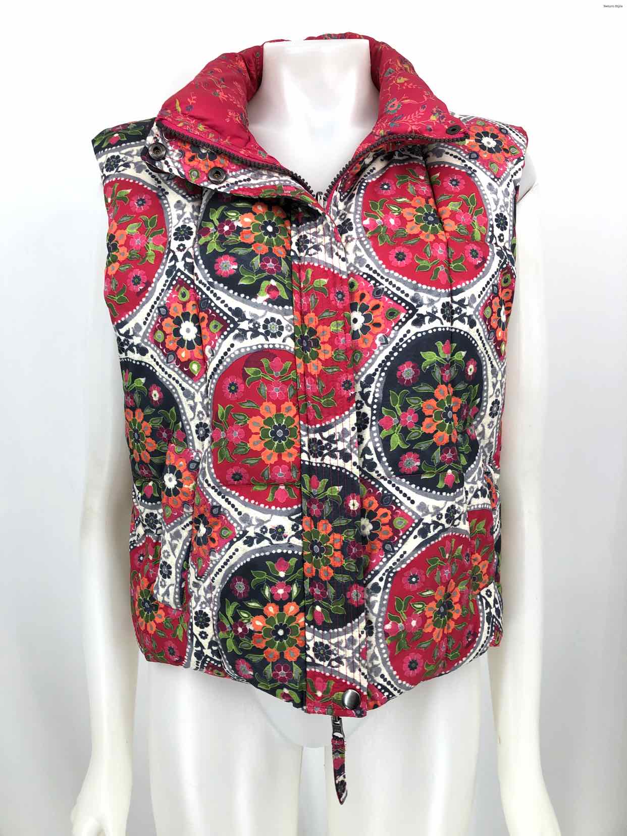 SUNDANCE Pink & White Gray Multi Puffer Print Zip Front Jacket