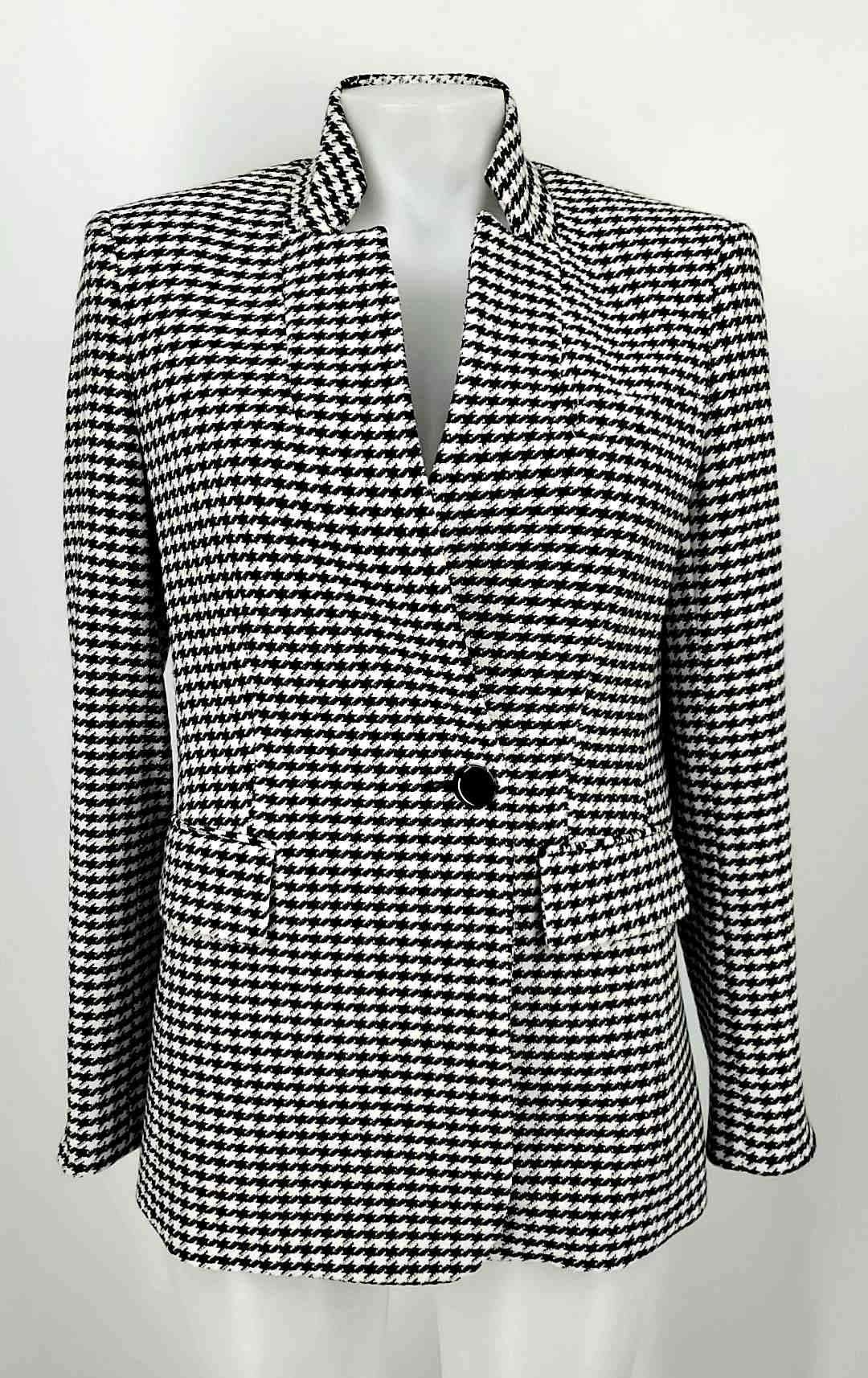 VERONICA BEARD White Black Tweed Houndstooth Longsleeve Jacket