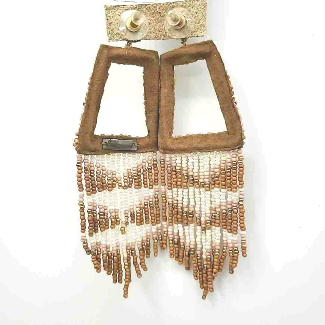 ANTHROPOLOGIE Beige Tan Seed Beads Dangle Earrings