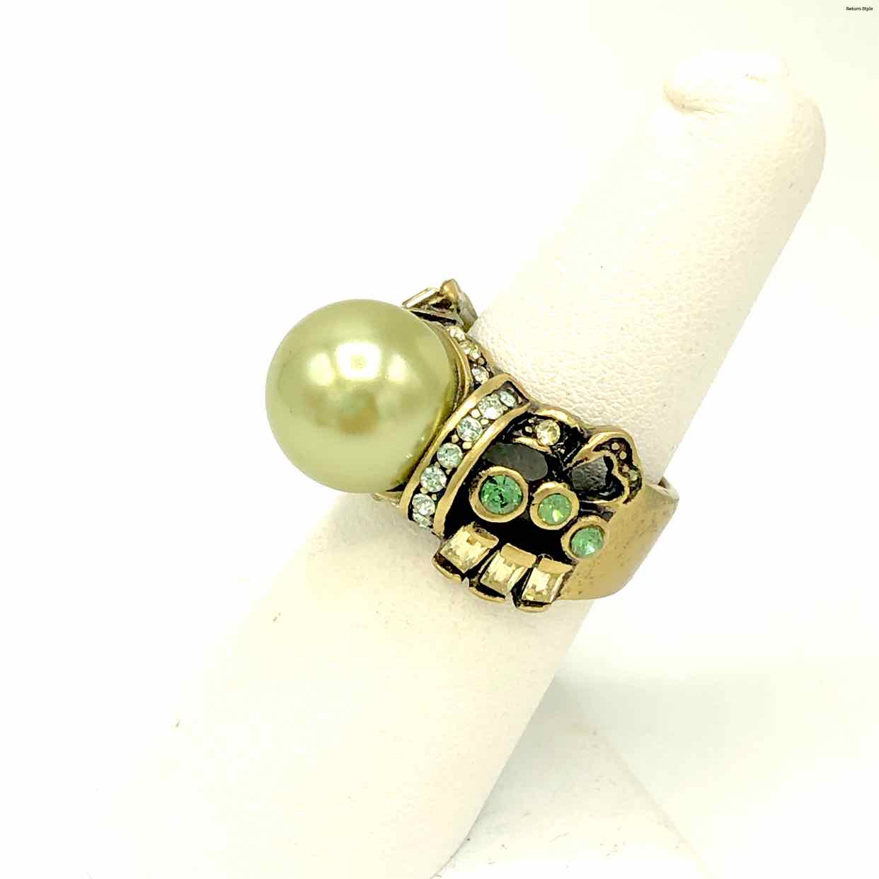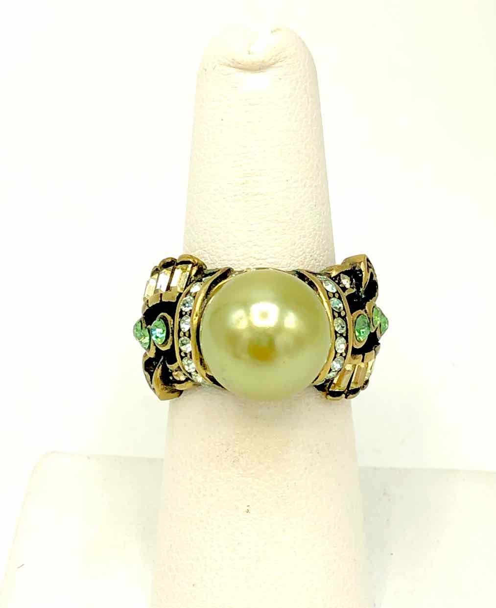 HEIDI DAUS Green Multi Brass Crystal Synthetic Pearl Pre Loved Ring Sz 7