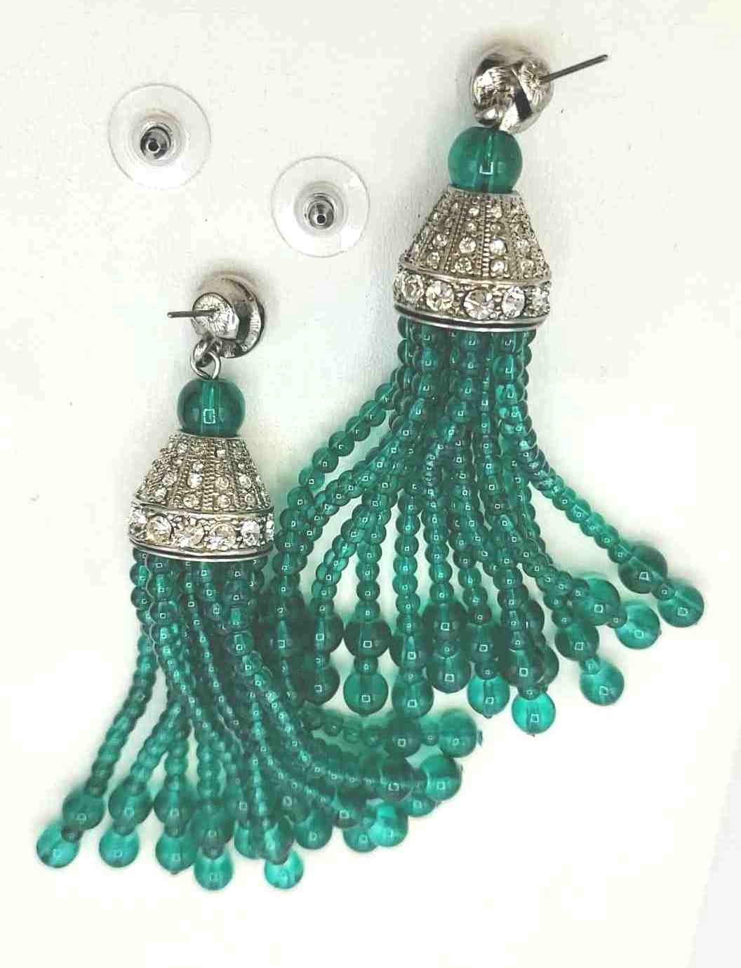 Kenneth Jay Lane Green Clear Glass Crystal Beaded Tassel Earrings
