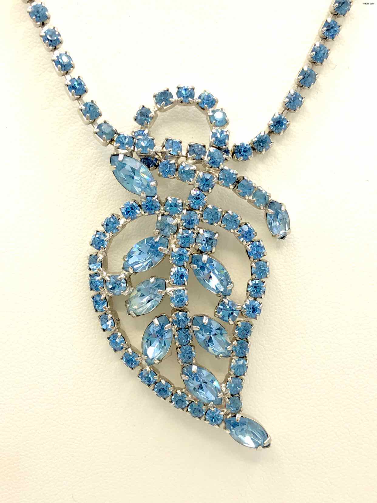 Lt Blue Rhinestones Leaf Vint-Neck