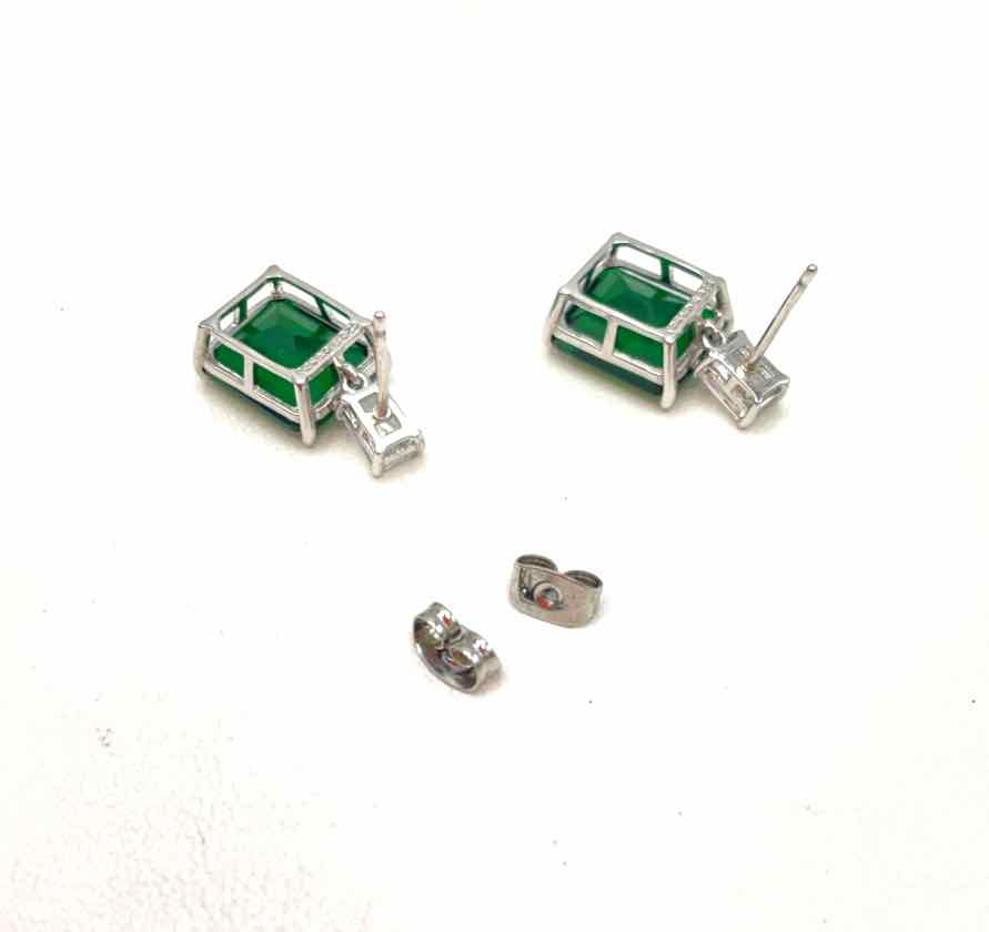 RACHEL GLAUBER Green Sterling Silver Cubic Zircon ss Earrings