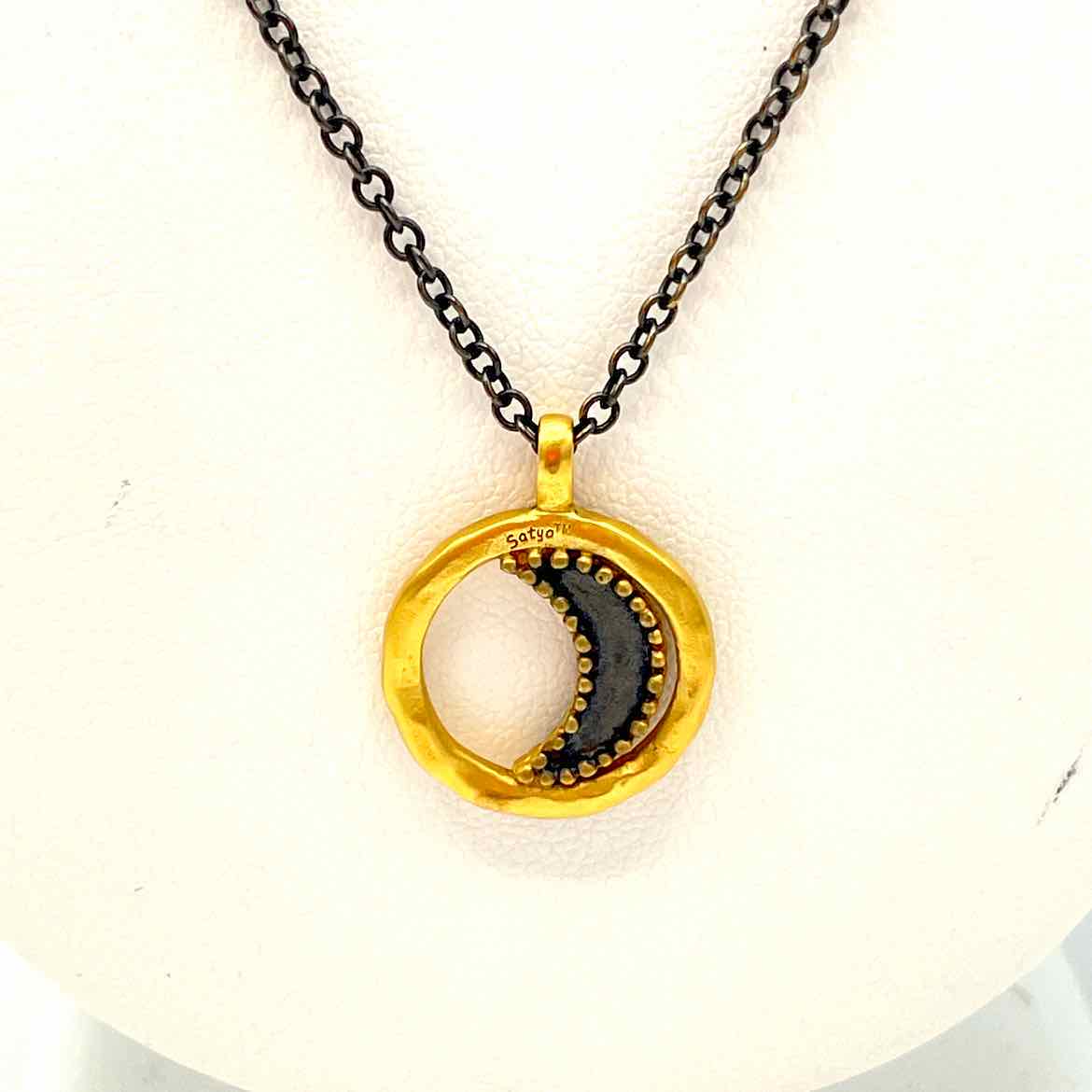 SATYA Black Goldtone Moon Pendant on Chain Necklace