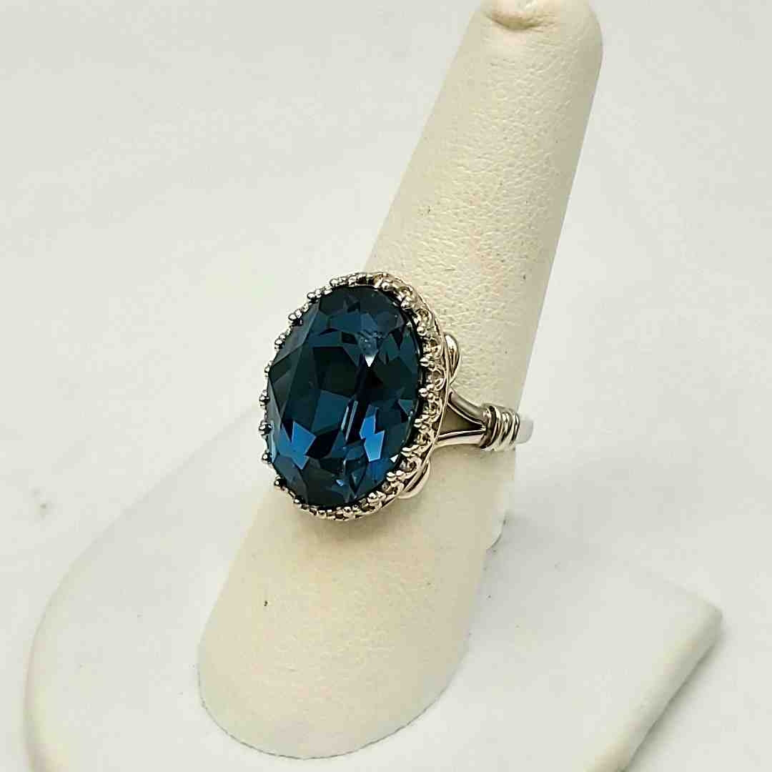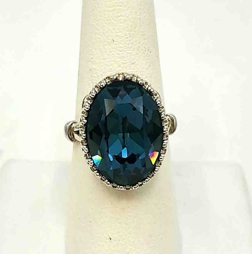 Silver Blue Sterling Silver Crystal Oval ss Ring sz8