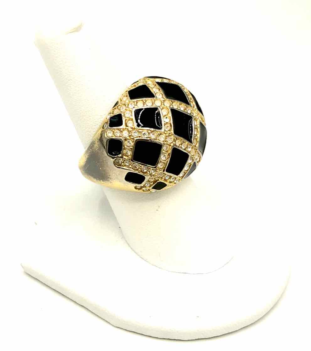 ST. JOHN Black Goldtone Crystal from Swarovski Enamel Pre Loved AS IS Ring Sz 8