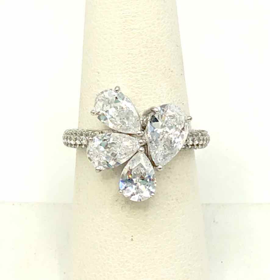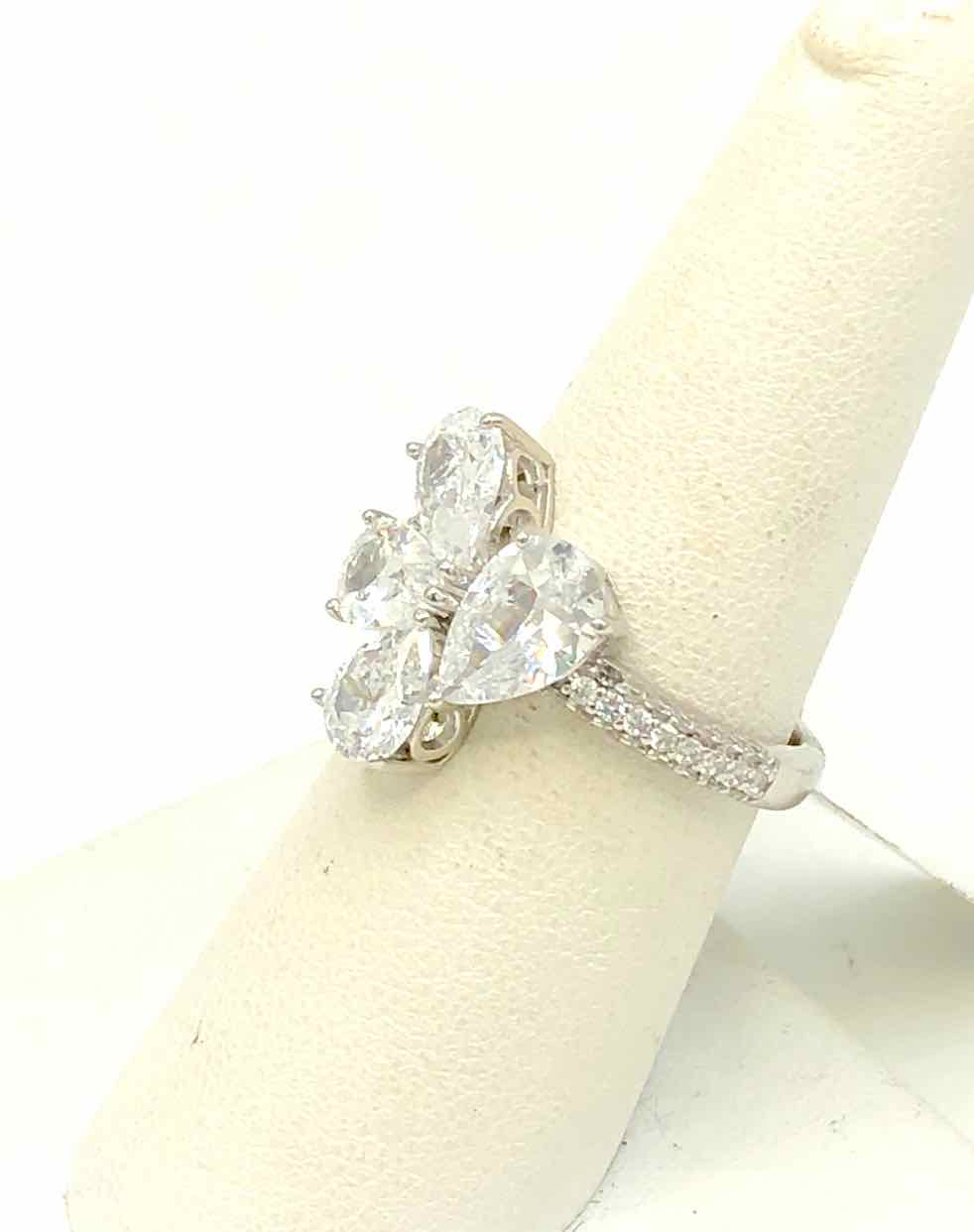 Sterling Silver Crystal Pave Faceted SZ 7 Ring SS