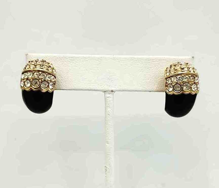 SWAROVSKI Black Goldtone Enamel Crystal Pre Loved Earrings