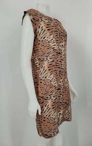 GRYPHON Salmon Gray & Blue Silk Animal Print Sleeveless Size MEDIUM (M) Dress