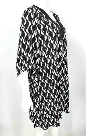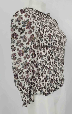 INTERMIX White & Black Multi-Color Silk Floral Tie at Waist Size MEDIUM (M) Top