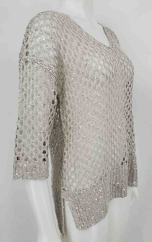 JOSEPH RIBKOFF Silver Gray Open Weave Size Petite (S) Top