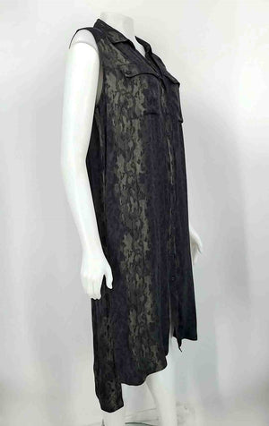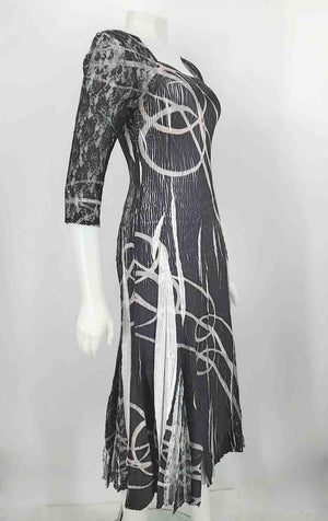 KOMAROV Black Gray & Beige Crinkle Lace Trim Midi Length Size MEDIUM (M) Dress