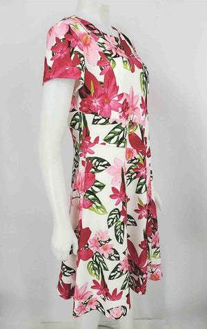 JOSEPH RIBKOFF White Pink Multi Floral Print Short Sleeves Size 12 (L) Dress