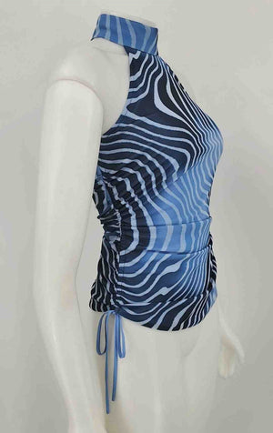 RAMY BROOK Navy Lt Blue Print Halter Size X-SMALL Top