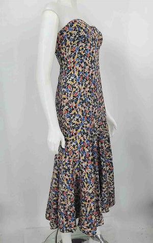 VERONICA BEARD Blue & White Yellow Black Floral Strapless Size 2 (XS) Dress