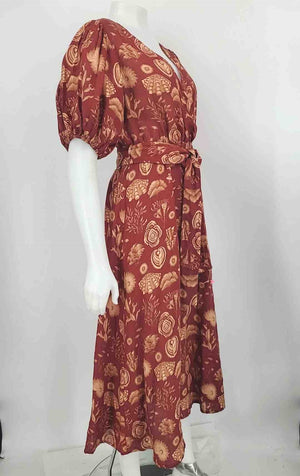 CAROLINA K Burgundy Tan Linen Sea Shells w/belt Size SMALL (S) Dress