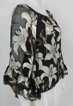 ALICE & OLIVIA Black Brown Multi Floral Print Longsleeve Size X-SMALL Top